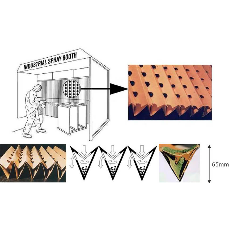 Картонные фильтры предназначены для очистки воздуха в покрасочных камерах. Фильтр картонный лабиринтный Andreae 701 0.75×13.33м работает по принципу многократного изменения направления движения частиц краски, тем самым выхватывая их из общего воздушного потока и осаждает их на стенках фильтра. Картонные фильтры вступительной фильтрации используются вместе с волоконными фильтрами типа Paint-Stop. Сделано в Польше.