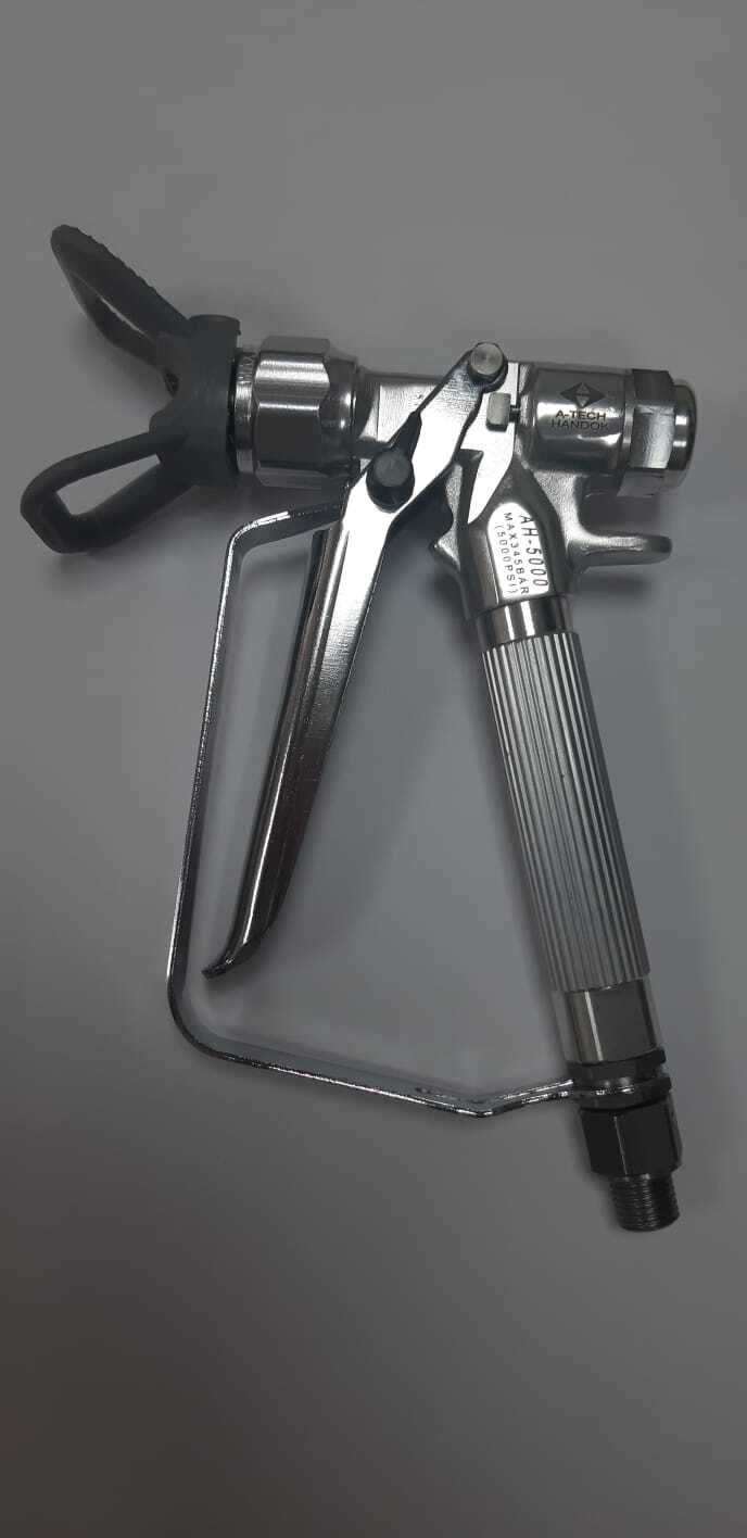 Краскораспылитель корейского производителя Handok АН-5000 может использоваться с любыми безвоздушными окрасочными аппаратами высокого давления до 350бар. Является аналогом пистолета Graco XTR-5. Резьба под соплодержатель - 7/8", соплодержателем не комплектуется. Присоединительная резьба для окраосчного рукава 1/4".