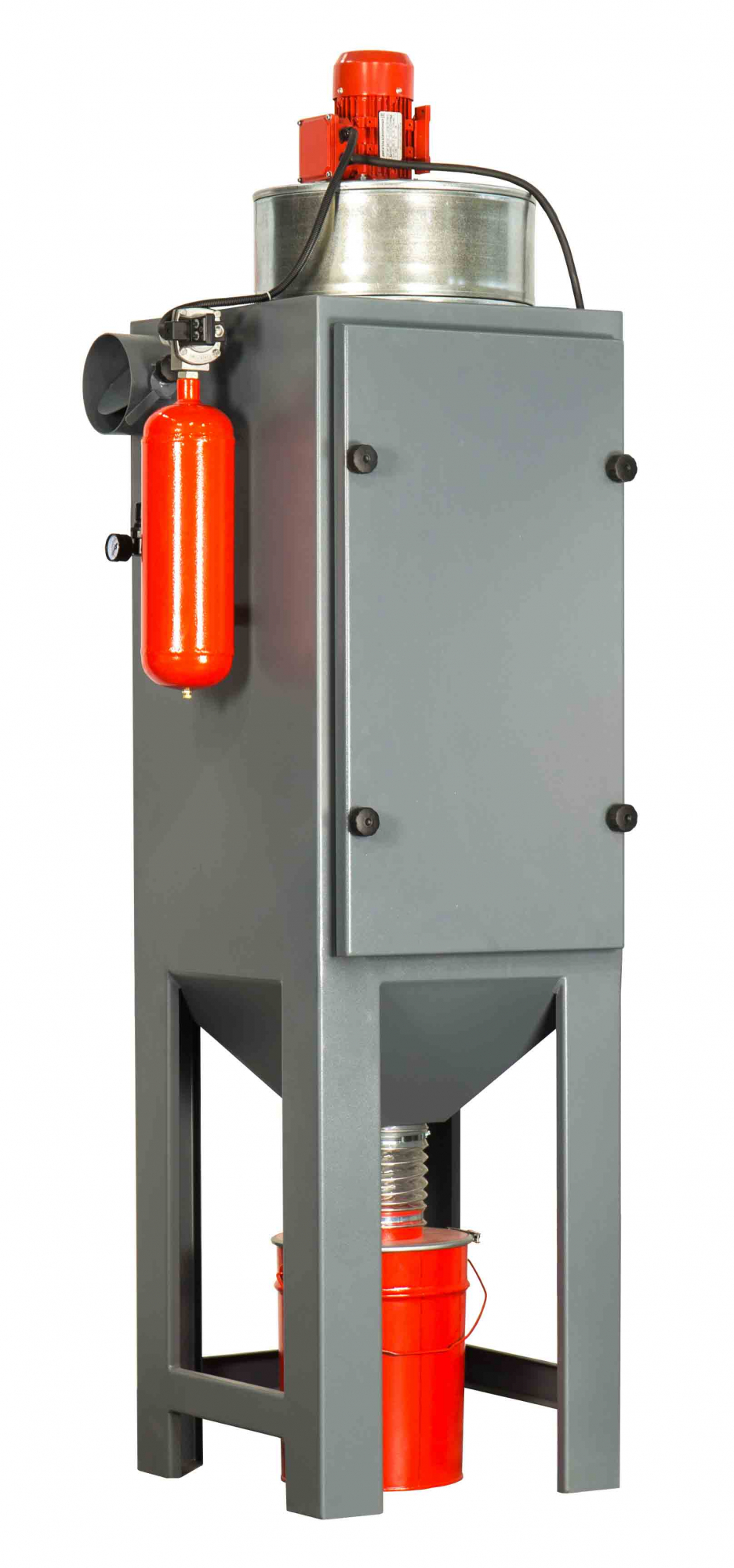 Фильтры оснащены вентилятором, который создает необходимое разряжение, сменным картриджем, устройством обдува пыли и контейнером для сбора пыли (пылесборником).