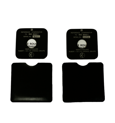 Компаратор шероховатости представляет собой квадратную металлическую пластину с отверстием в центре, разделенную на четыре квадранта с определенной для каждого из них шероховатостью поверхности. Профиль поверхности визуально или тактильно сравнивается поочередно с квадрантами компаратора.