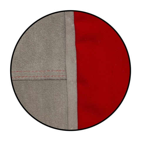 Комбинезон – красного цвета с серыми вставками из кожи